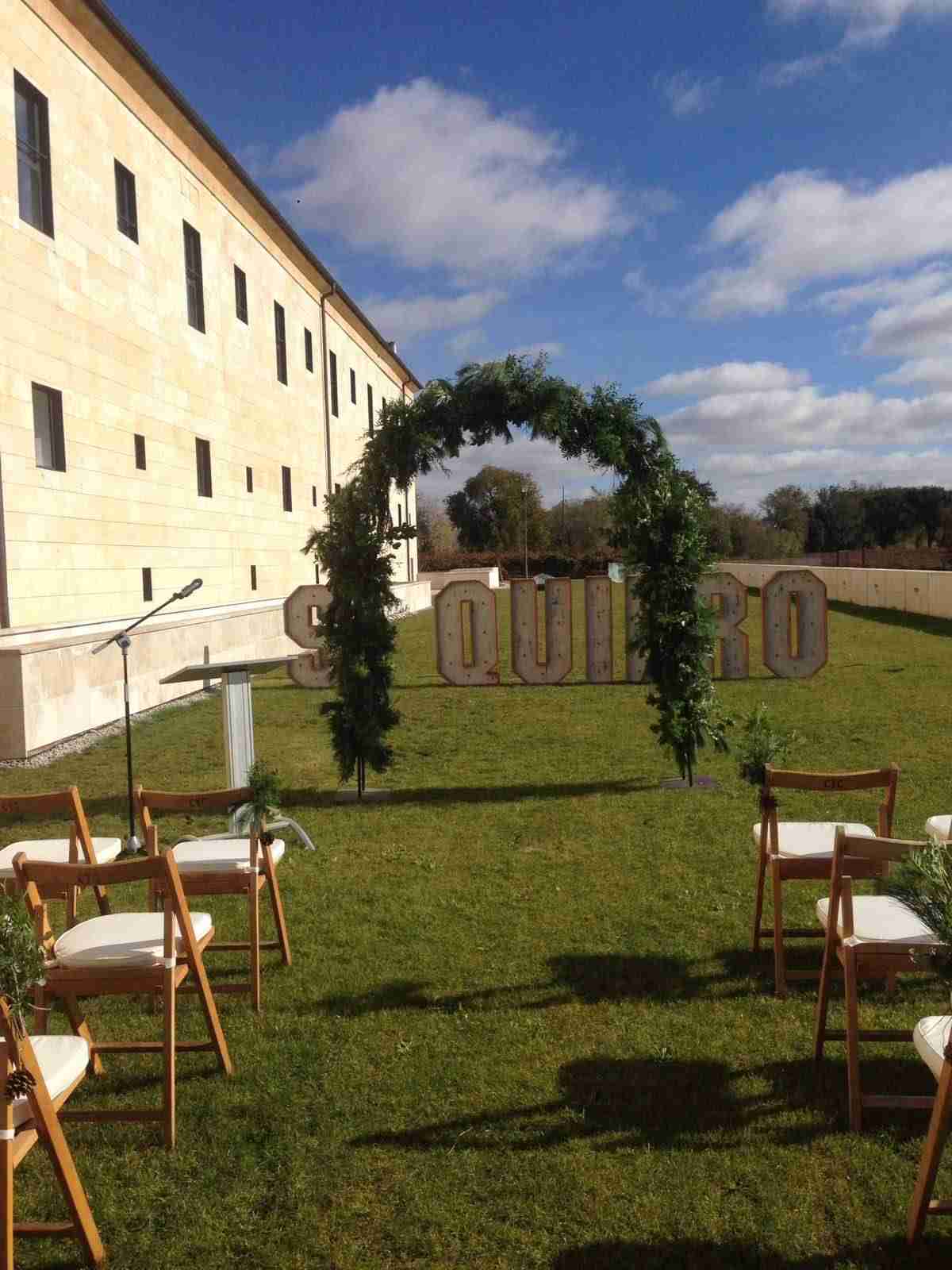Esta boda civil celebrada también en el Monasterío de Valbuena, (castilla Termal), se celebró en noviembre y su decoración floral se inspiró en nuestra propia tierra como las piñas y el las hojas de roble, entre otros verdes …