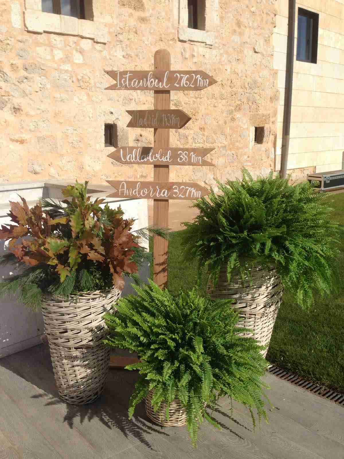 Cestas de helechos y arreglos con hoja de roble en cada rincón. Esta boda sorprendía en cada rincón con detalles, pues no hay nada como utilizar elementos de cercanía para disponer de abundante materia prima y así poder ser más sostenibles.