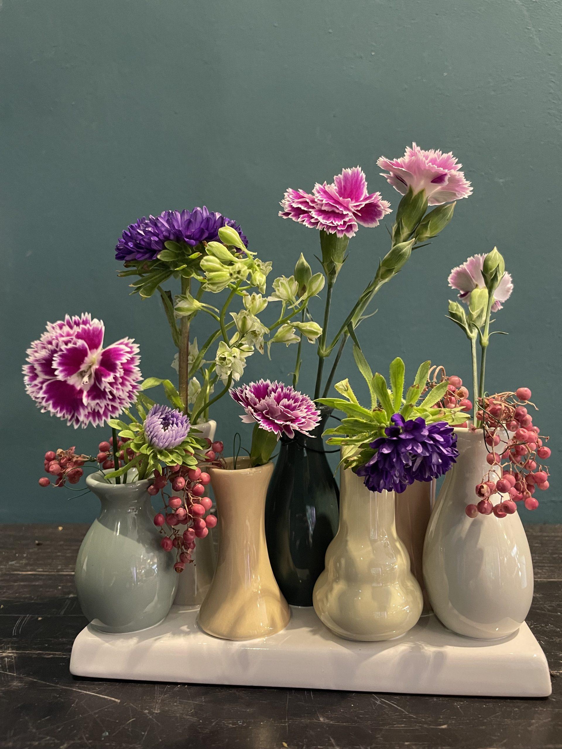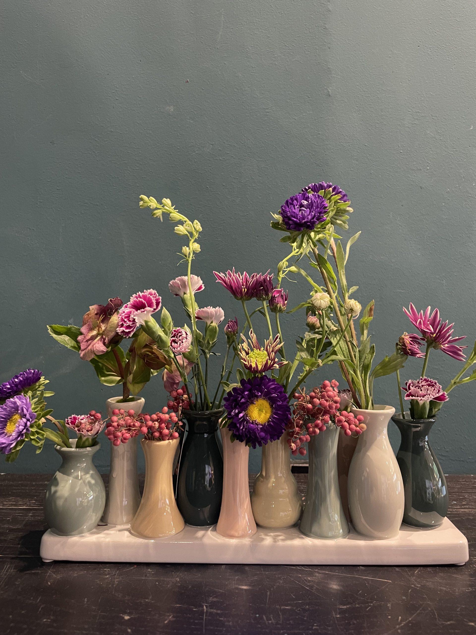 Bandeja de jarrones de cerámica en una pieza para poner flores.