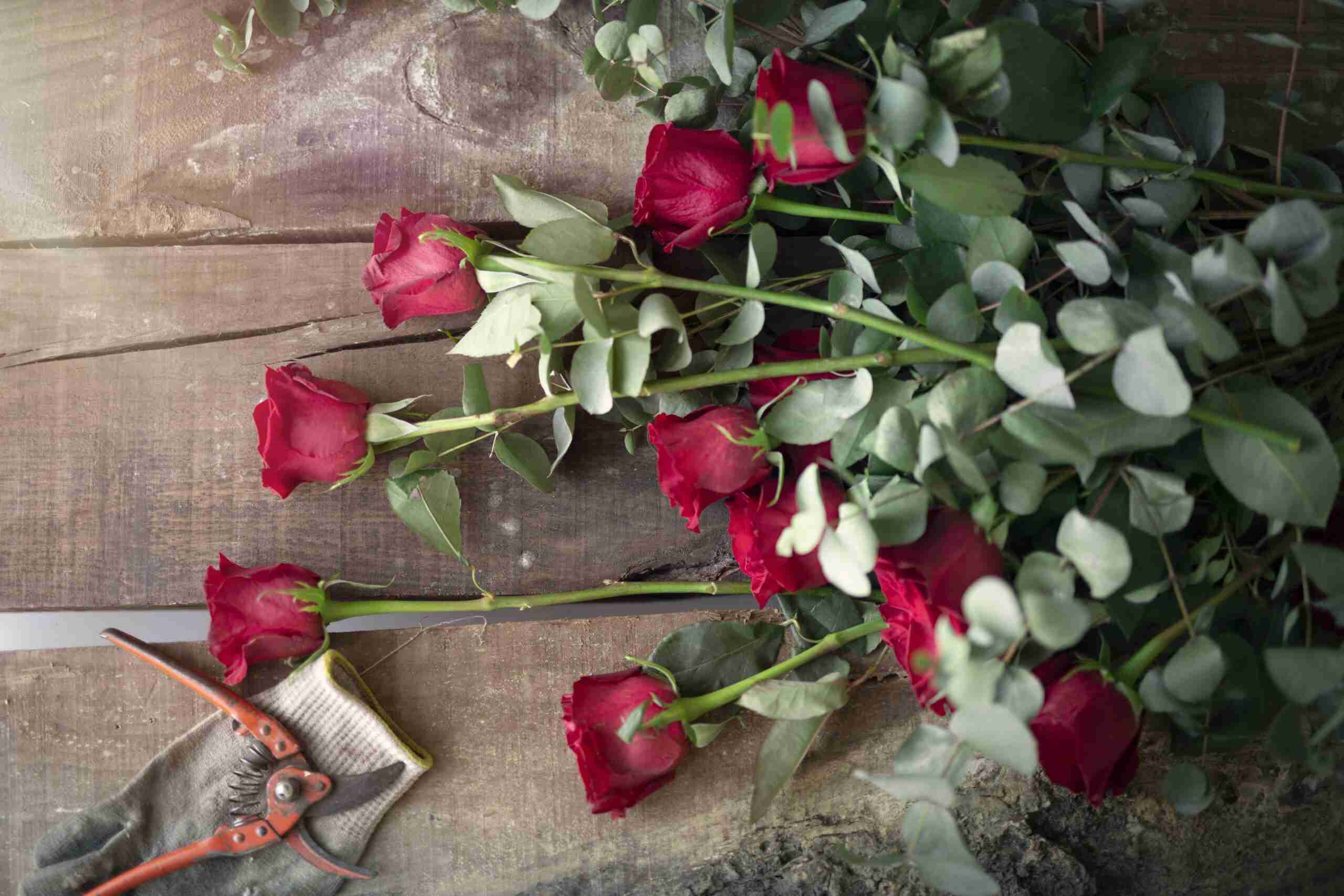 Ramo de rosas rojas de tallo largo y calidad extra, acompañadas de diferentes verdes y presentadas para regalo con papel de seda rojo. El clásico regalo de San Valentín, con esto no te equivocarás.