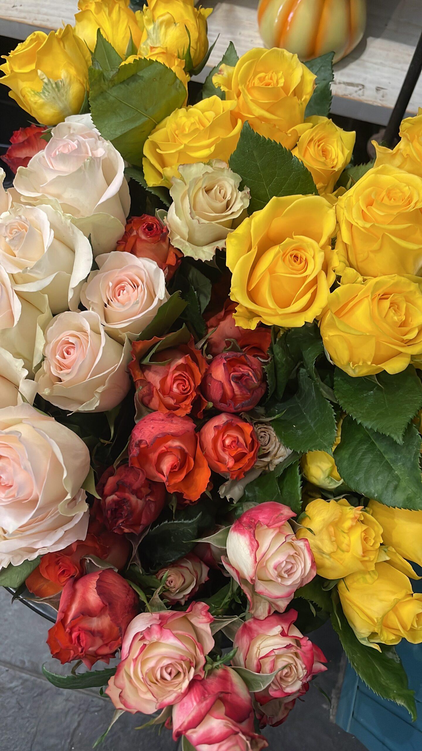 Ramo de 15 rosas y verdes, color dependiendo de disponibilidad.
